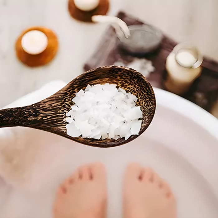 Para fazer uma escalda-pés, encha uma bacia com água quente (não muito quente) e adicione um dos nossos preparados!